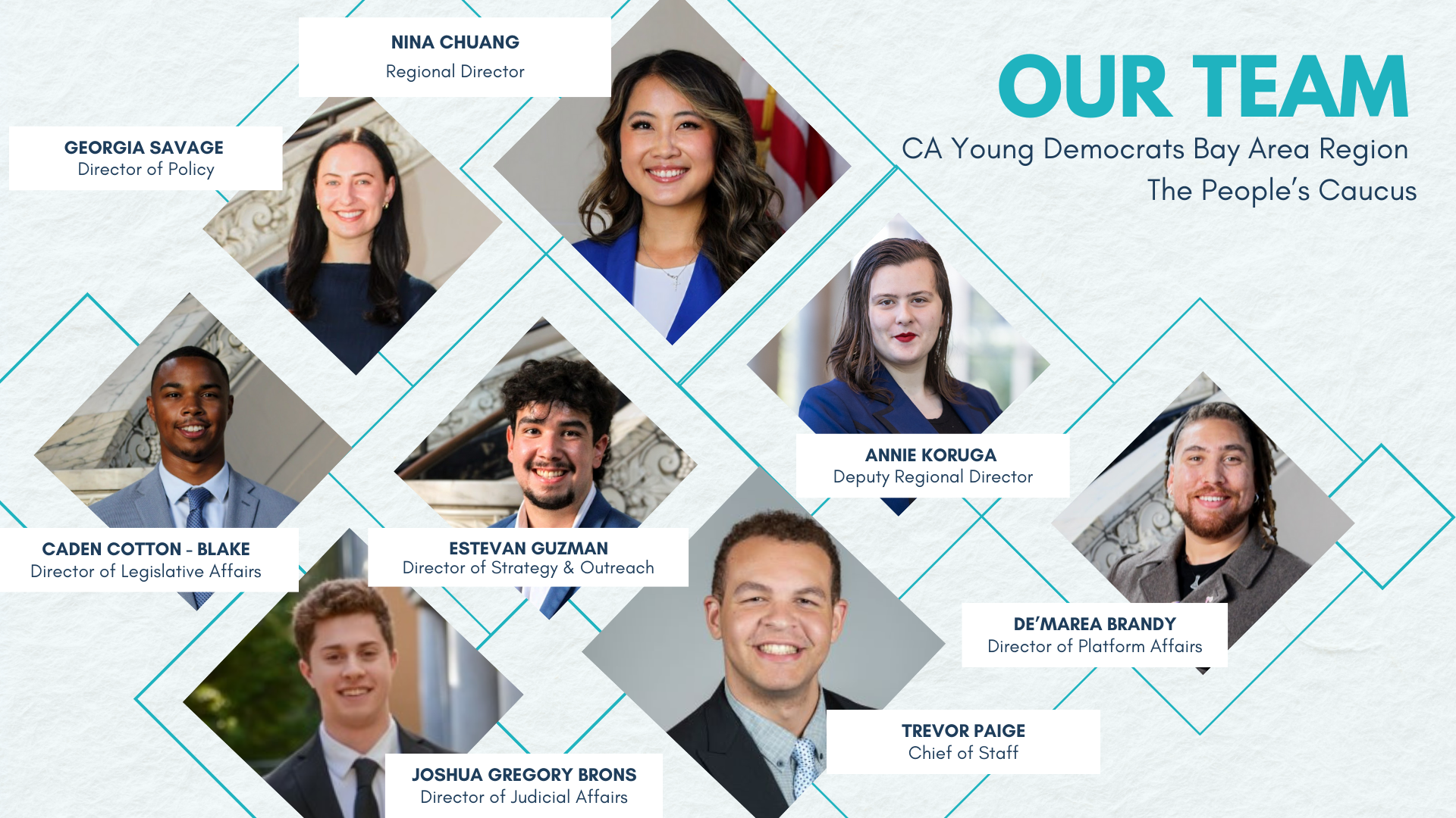Meet the executive leadership team guiding the CA Young Democrats Bay Area Region forward.